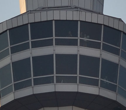遠くて細かいところはわかりませんが、、、屋上の一部を等倍表示にして切り出してみました。
